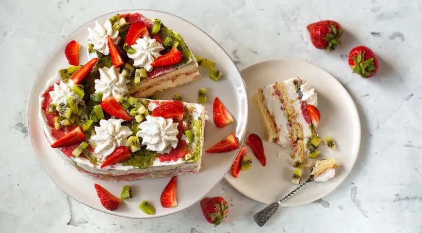 Этот торт-мороженое с клубникой и киви не только порадует вкусом, но и удивит своими полезными свойствами. Яркие цвета и свежесть делают его прекрасным угощением для любого стола. Попробуйте этот простой в приготовлении десерт и освежите свои летние вечера!