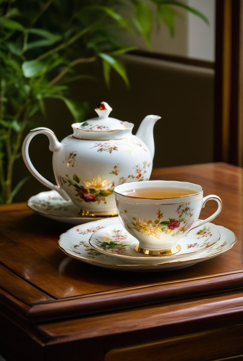 - Фарфор: Считается эталоном качества. Твердый фарфор отличается высокой прочностью, а костяной фарфор выделяется лёгкостью и прозрачностью, что делает его символом роскоши.