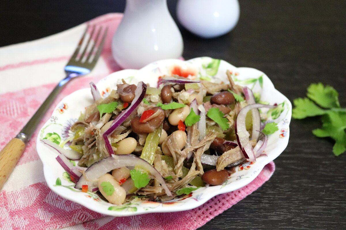Время приготовления: всего 20 минут, если фасоль и мясо уже отварены.