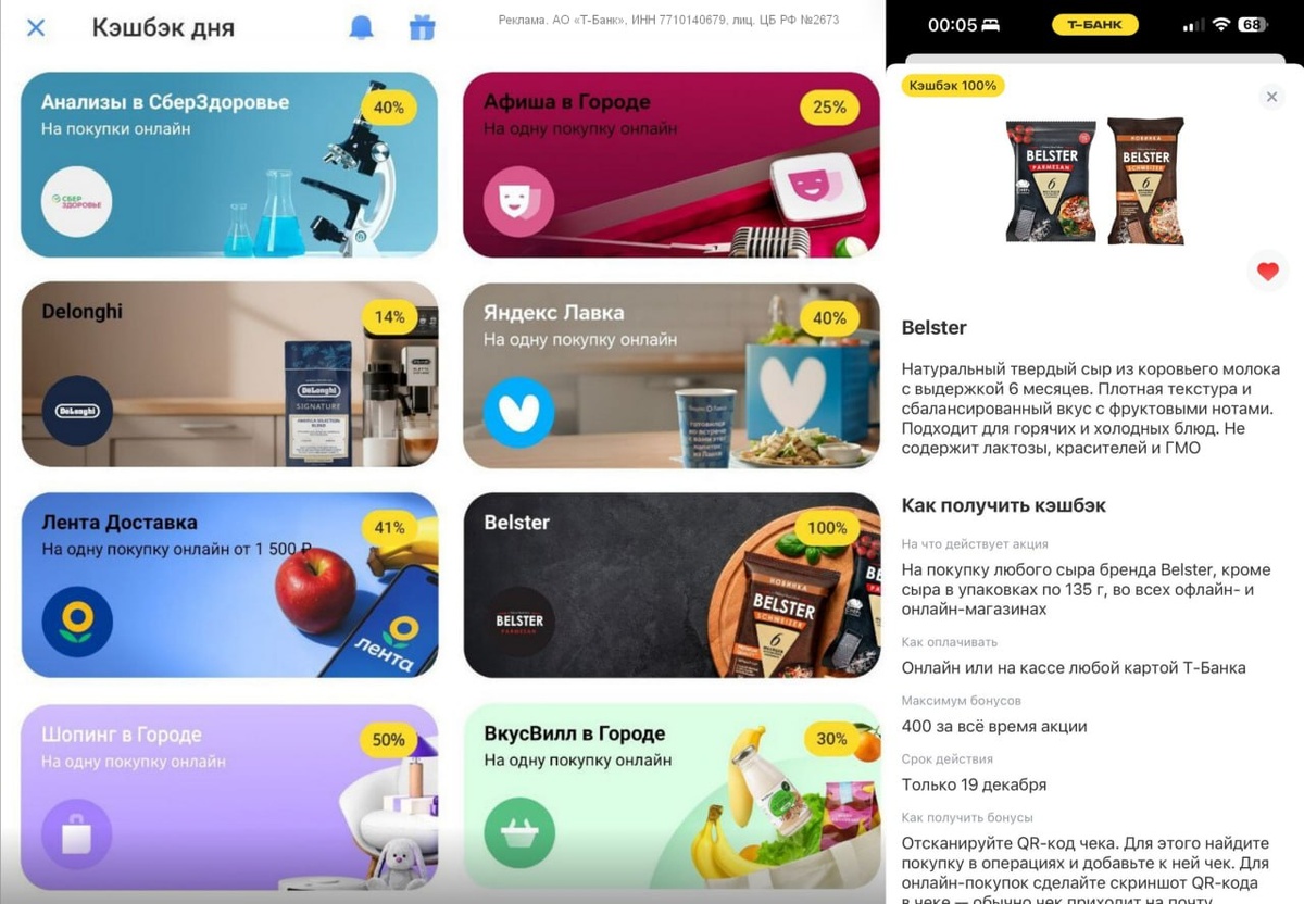 Т-Банк удивляет своих клиентов уникальным предложением: сегодня в рамках акции доступен редкий 100% кэшбэк на вкусный сыр Belster. Потребители могут получить возврат до 400 рублей за его покупку в любом продуктовом магазине. Многочисленные отзывы утверждают, что этот сыр по своему вкусу напоминает классический пармезан.