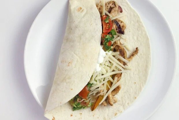 Когда все ингредиенты готовы, выложить на тортильи курицу с овощами, гуакомоле, сальсу, йогурт и сыр чеддер. Это блюдо идеально подходит для общения — накройте стол всеми ингредиентами, и каждый сможет собрать свою порцию фахитас.