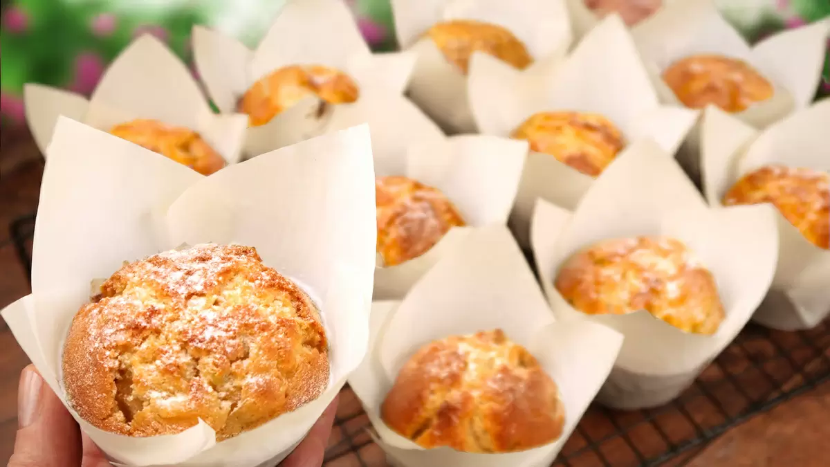 Основу составляют мука и жирная основа: масло придаёт нежность, яйца и молоко — связывают тесто, а сахар добавляет лёгкую карамельную нотку. Яблоки добавляют сочность и яркий вкус, корица — характерный акцент. Разрыхлитель поднимает маффины, чтобы они получились пышными. В финале — небольшой штрих масла и сахара сверху, который слегка карамелизируется во время выпечки.