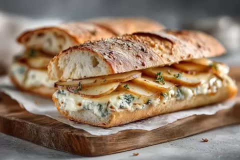 Аккуратно соберите бутерброд, положив на сыр карамелизированные груши и слегка прижав. Если есть возможность, можно на минуту отправить сэндвич в духовку, разогретую до 180 градусов, или на сухую сковороду под крышкой. Это поможет сыру расплавиться, а хлебу стать хрустящим. Бутерброд готов к подаче — насладитесь им сразу же!