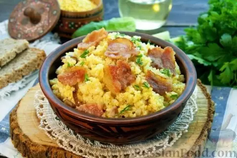 - Пшённая каша с беконом: Эта классика не осталась без внимания. Пшено готовится в духовке, а к нему добавляются сочные кусочки бекона и ароматный лук, что придаёт блюду невероятный вкус и насыщенность.