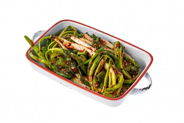 Кимчи из лука – это закуска, которую обычно едят сразу же, ведь ее не принято заготавливать на длительный срок. Особенный шарм придает этому блюду цельный лук: как зеленые стебли, так и молодые луковицы. В Корее это ки?мчи считается деликатесом, поскольку местный климат способствует ускоренному созреванию лука. Для идеального кимчи требуется лук в промежуточной стадии, когда он обрел насыщенный вкус, но еще не стал зрелым.