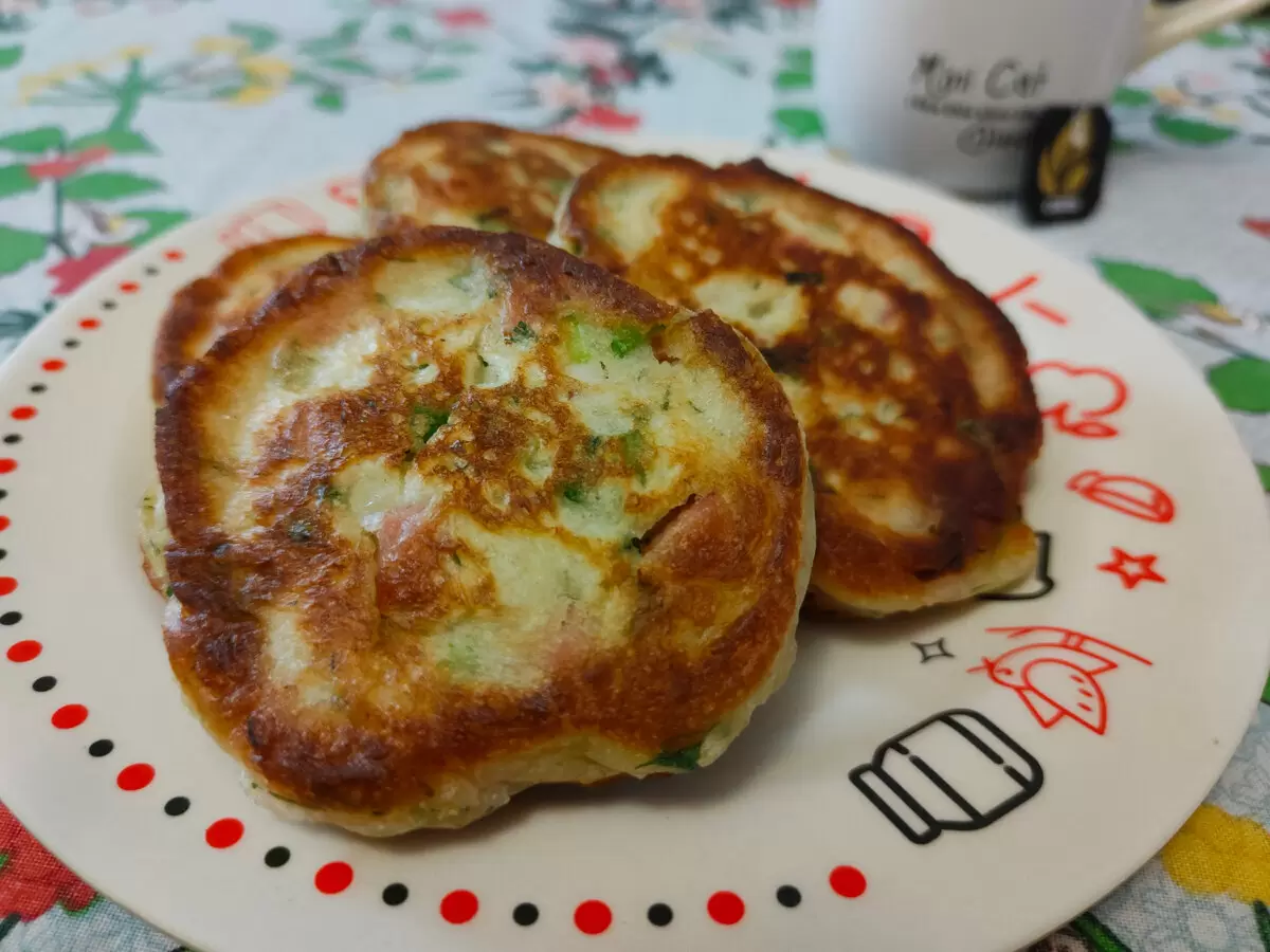 Подогреть кефир (добавив 50 мл воды) в микроволновке до теплого состояния. Не волнуйтесь, если он немного свернется — это нормально.К теплому кефиру добавить сахар, соль и яйцо. Хорошо перемешать.Постепенно вводить муку, замешивая густое тесто, затем добавить мелко нарезанную ветчину и зелень.В самом конце вмешать соду, но не переусердствуйте с перемешиванием — иначе оладьи не будут пышными.Разогреть сковороду с растительным маслом, чтобы оно покрывало дно слоем около 0,5 см.С помощью столовой ложки выкладывайте тесто на сковороду, оставляя небольшие промежутки между оладьями — они будут увеличиваться в размере.Настройте температуру так, чтобы оладьи жарились по 3-4 минуты с каждой стороны, чтобы хорошо пропечься внутри и не подгореть.Готовые оладьи выложите на бумажное полотенце, чтобы убрать лишний жир.В результате получаются невероятно пышные оладьи, напоминающие пирожки, и они очень сытные. Приятного аппетита!
