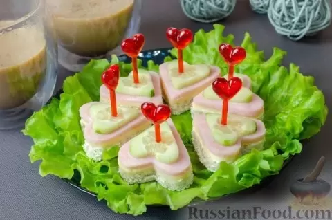 Канапе с сыром, ветчиной и огурцом – великолепный выбор для утреннего праздника. Эти милые сердечки с яркими ингредиентами позволят не только порадовать близких, но и по-настоящему удивить их творческим подходом. В состав входят: