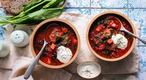 Красный борщ со щавелем – это не просто блюдо, а настоящая кулинарная классика, которая радует своим вкусом и ароматы летом. Он полон витаминов и полезных веществ, благодаря чему способен насытить и поднять настроение. Щавель, добавляемый в борщ, является отличным источником витамина С и других полезных элементов, способствующих укреплению иммунной системы.