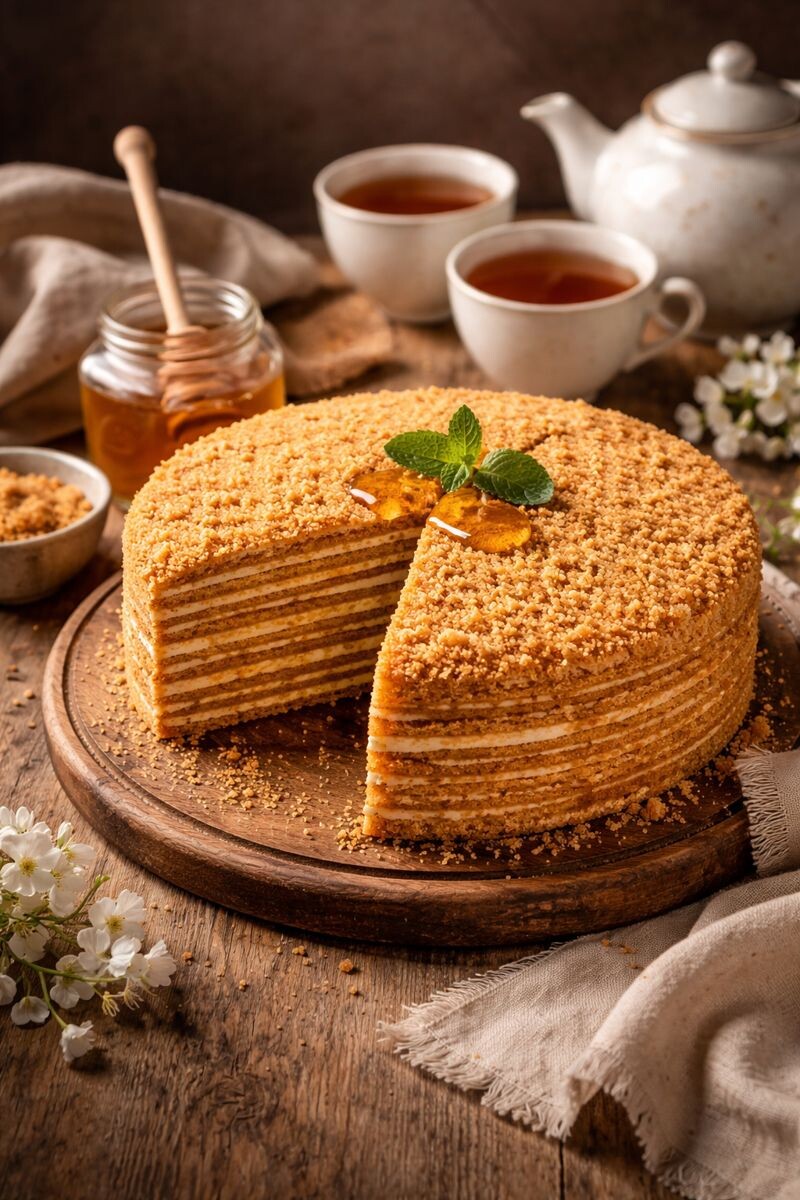 Такой медовик возвращается в память не как громкая сладость, а как тихий ритуал домашнего чаепития, где каждый слой держится, как часть общего настроения.