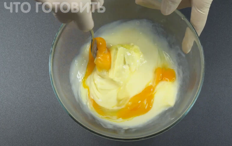 После этого добавляют муку и разрыхлитель. Важно тщательно перемешать массу, добиваясь однородной консистенции, которая должна напоминать густую сметану. Если тесто окажется слишком жидким, можно добавить немного муки, или наоборот, если оно слишком густое, уменьшить порцию муки.