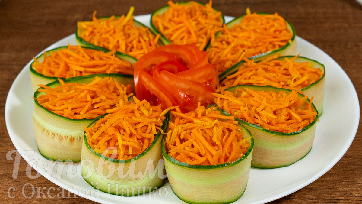 Салат-закуска "Цветок" — это не просто блюдо, а настоящая находка для любого праздника. Убедительная простота его приготовления и привлекательный вид делают его незаменимым на торжественном столе. Сочетание свежего огурца и пикантной моркови по-корейски радует во всех отношениях. Эта легкая закуска готовится за считанные минуты, что очень удобно в напряженные дни подготовки к празднику.