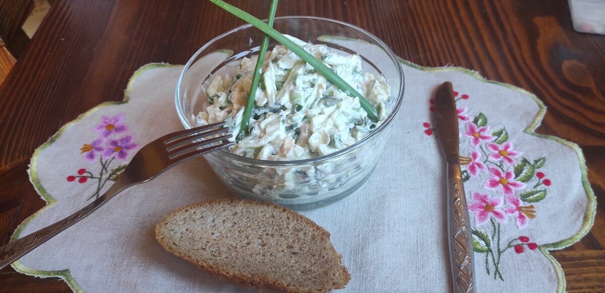 Салат по-деревенски — это классика, которая всегда присутствует на столах в деревнях Тверской области, и особую любовь к нему передали из поколения в поколение. Во время весенних визитов к родственникам, этот легкий и питательный салат непременно оказывается в меню. В его рецепте используются простые и доступные продукты: свежие яйца от кур, сметана от коров и зеленый лук, который также можно легко вырастить дома, пишет Рецепты от 7dach.