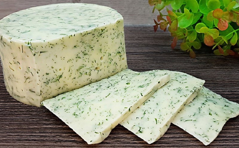 После этого можно добавить любимые специи или зелень. Перекладываем в форму, выравниваем и оставляем застывать в холодильнике на 2–3 часа. Когда процесс завершится, ароматный сыр готов к нарезке и дегустации!