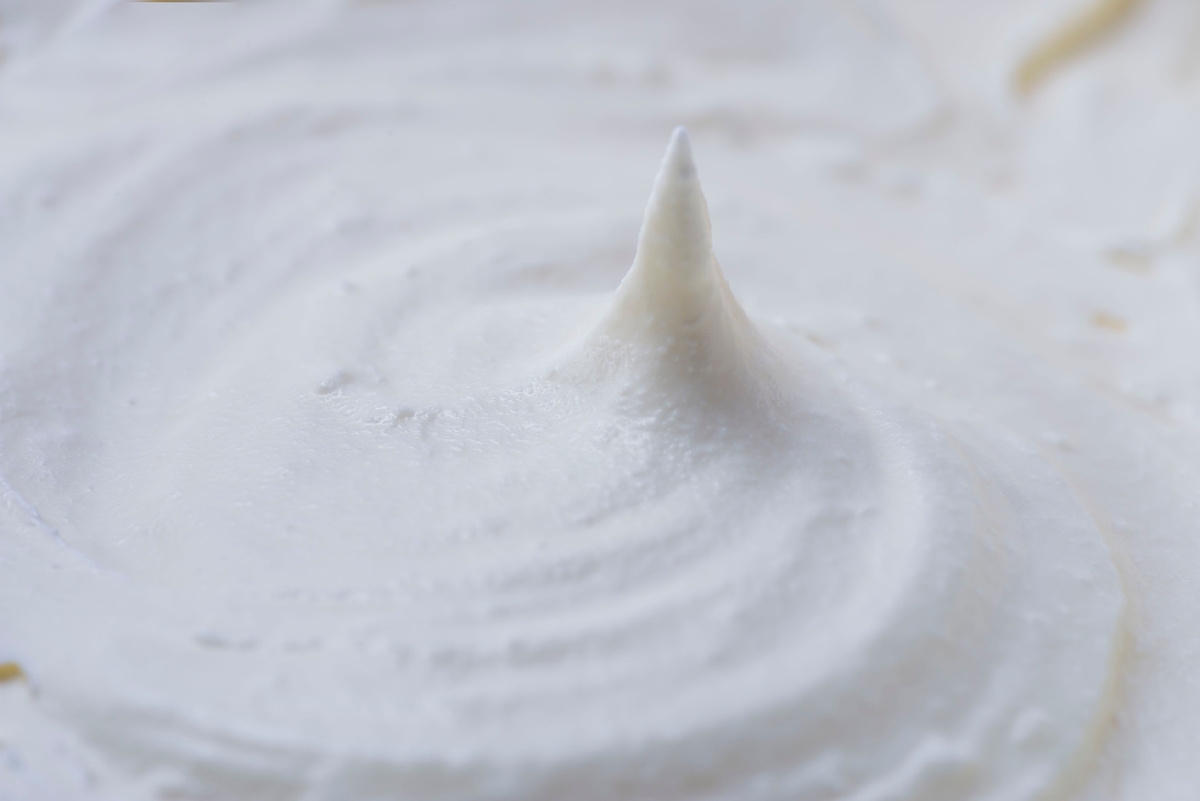 Продолжайте взбивать до появления устойчивых пиков. Будьте осторожны, чтобы не перебить, иначе сливки могут стать маслом — этот процесс займет 3-5 минут.