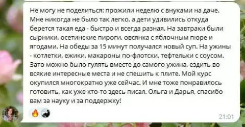 Технологии и практические советы, предлагаемые на курсах, помогут значительно сократить время, проводимое на кухне. Вместо долгих часов, потраченных на готовку, это время можно будет использовать для общения с семейством, отдыха или даже для романтических ужинов. Ученики, такие как Марина, подтверждают, что изменения в кулинарии открывают новые горизонты в семейной жизни.