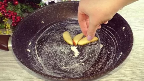 Для начала обязательно подготовьте сковороду диаметром около 26 см: смажьте ее сливочным маслом и посыпьте немного сахара. Яблоки нарежьте тонкими ломтиками и выложите их произвольно на дно сковороды. Если хотите, яблоки можно перемешать с тестом, и тогда сахар на дно выкладывать не придется.