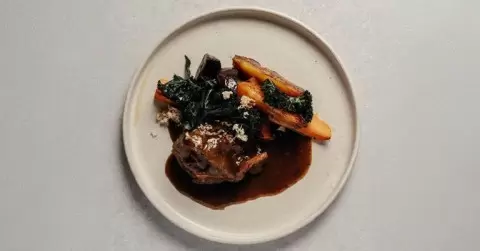 • Блестящие томленые щечки с зимними корнеплодами (1690 руб.) поражают ароматом грибов и тают во рту;