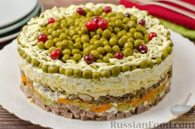 Слоёный салат с языком и шампиньонами станет настоящей звездой любого застолья. Насыщенный и яркий вкус ингредиентов, таких как говяжий язык, маринованные огурцы и сыры, заставит гостей не раз оценить это блюдо по достоинству.