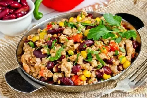 Рагу с фаршем, кукурузой и фасолью в мексиканском стиле — яркое и ароматное блюдо, которое украсит любой стол. Быстрое в приготовлении, оно не требует сложных ингредиентов, ведь все необходимое легко найти в банках.